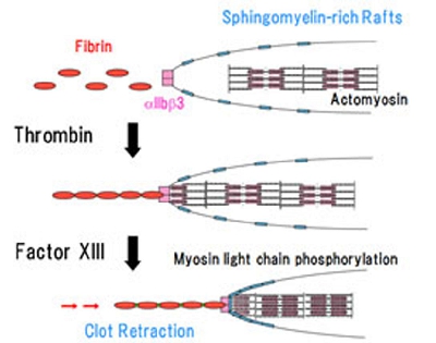 (42) Kasahara K. : Clot retraction is mediated by factor XIII-dependent fibrin -alphaIIbbeta3 -myosin axis in platelet sphingomyelin-rich membrane rafts.