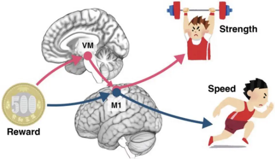 We revealed the functional role of the mesocortical pathway in mind-motor interactions during incentive motivation. Using functional magnetic resonance imaging, we showed that dopaminergic midbrain activity enhances grip force by modulating premovement activity in M1. This result highlight how motivation optimizes motor performance, providing critical insights into the neural mechanisms linking motivation and motor control (Neurosci Insights 2024).