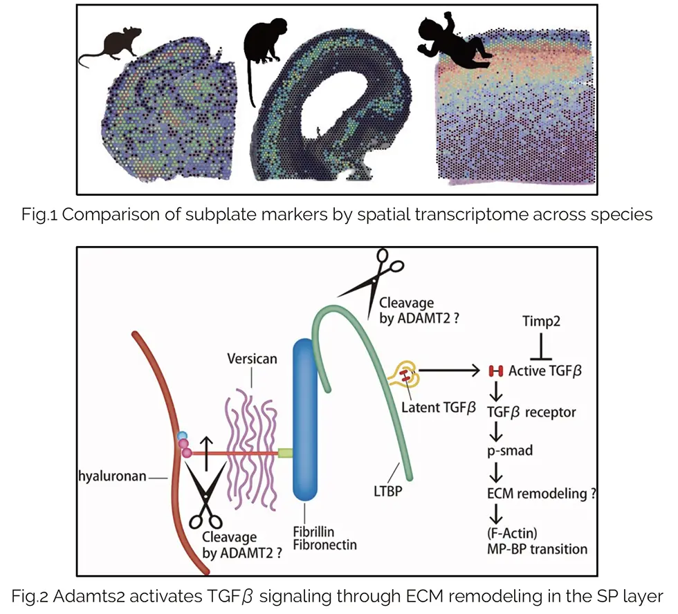 We previously found that SpNs convert the migration mode of developing neurons from multipolar to bipolar (Science, 2018). In 2024 we showed that migrating neurons secrete the metalloprotease, Adamts2, which cleaves extracellular matrix proteins to activate TGF-β, which facilitates multipolar to bipolar transitions (EMBO Rep, 2024, Fig2). In a separate study, we also found that thalamic activity is critical for the differentiation of sensory input cells in the avian cerebellum (JCN, 2024).
