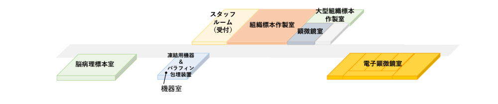 分子病理・ヒストロジー解析室では、東京都医学総合研究所のプロジェクト研究、病院等連携研究の病理、組織化学、生化学的な解析等の支援を行っており、光学顕微鏡と電子顕微鏡の組織標本作製、技術指導、そして機器利用サービスを提供しています。